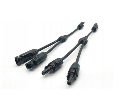 ✅ Złącza konektory MC4 podwójne równoległe (Y-branch) – umożliwiają połączenie dwóch paneli w równoległy układ, utrzymując napięcie przy zwiększonej mocy.