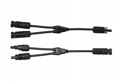 ✅ Złącza konektory MC4 podwójne równoległe (Y-branch) – umożliwiają połączenie dwóch paneli w równoległy układ, utrzymując napięcie przy zwiększonej mocy.