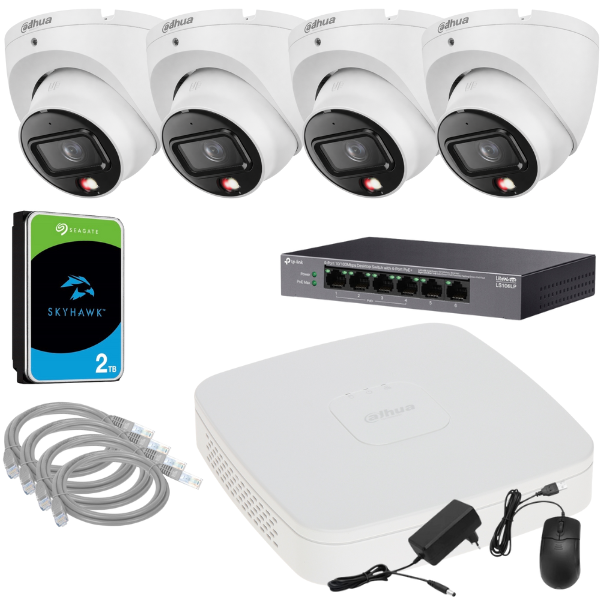 • 4 x Kamera IP Dahua IPC-HDW1639T-A-IL-0280B-S6 – 6 MP PoE Dual Light
