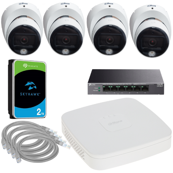 Zestaw Monitoringu Dahua –4 Kamery 6 MPDual Light Rejestrator Dysk 2TB POE